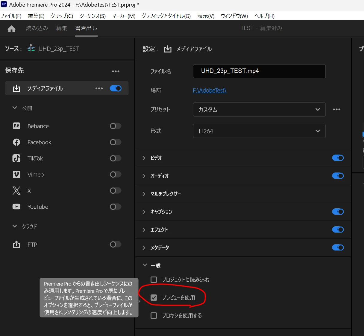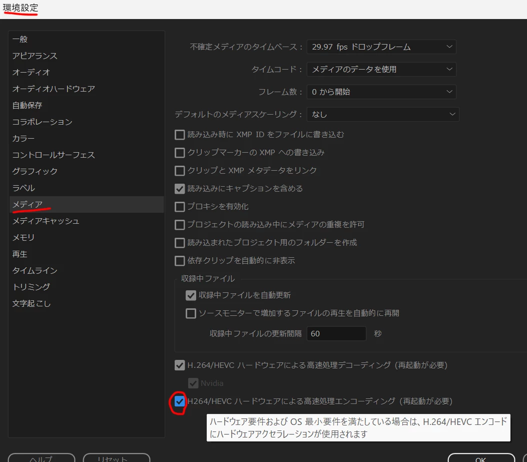 動画の書き出し時にハードウェアエンコードがグレーアウトしており、