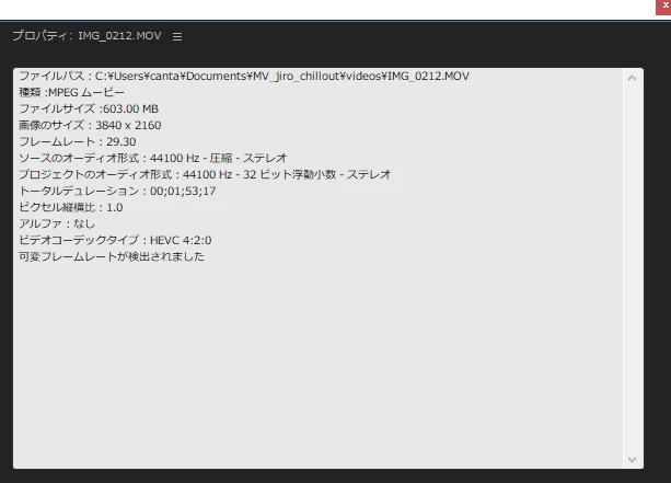 ちなみに可変フレームレートがあれこれとネットに書いてあったのでmedia encoderでMP4かつ固定フレームレートに変換しました。