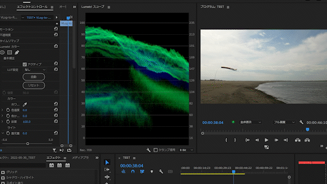 百聞は一見に如かずなので、「Lumetriカラー」の露光量の挙動と、「ルミナンス補正」の明るさの挙動を比較した動画を添付します。