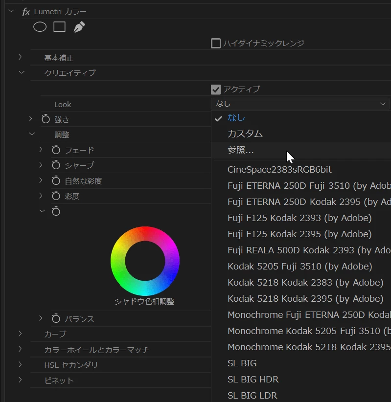 Lumetri Look/Lutの「選択」が機能しない(12.1)