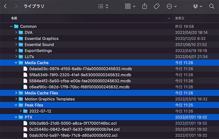 上記フォルダー内にある下図で選択されたフォルダーがPremiereのキャッシュになります。