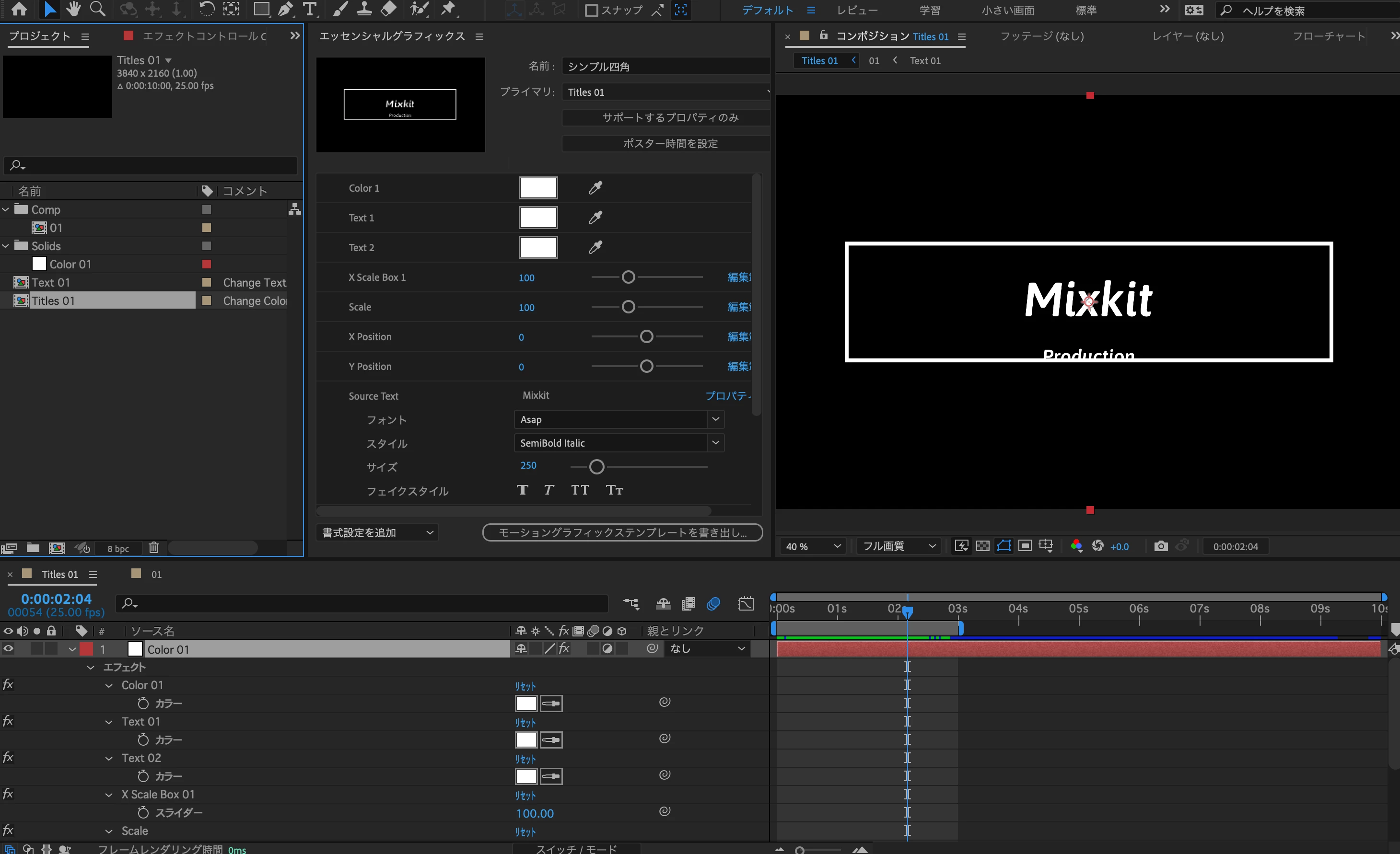 aftereffecsにて一部を日本語化し、モーショングラフィックテンプレートとして書き出しをしたのですが、