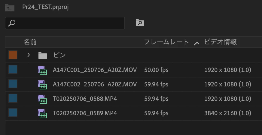 UB50のHD、イントラとロングで撮影したデータをPremiereにインポートすると