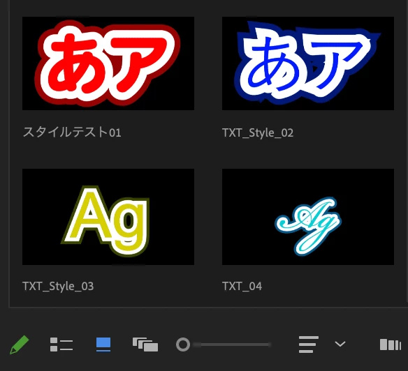 以前は日本語表示していたのですが、いつの間にかフォントが英語を持つテロッププリセットは、アイコンでは英語表示されるようになってしまいました。