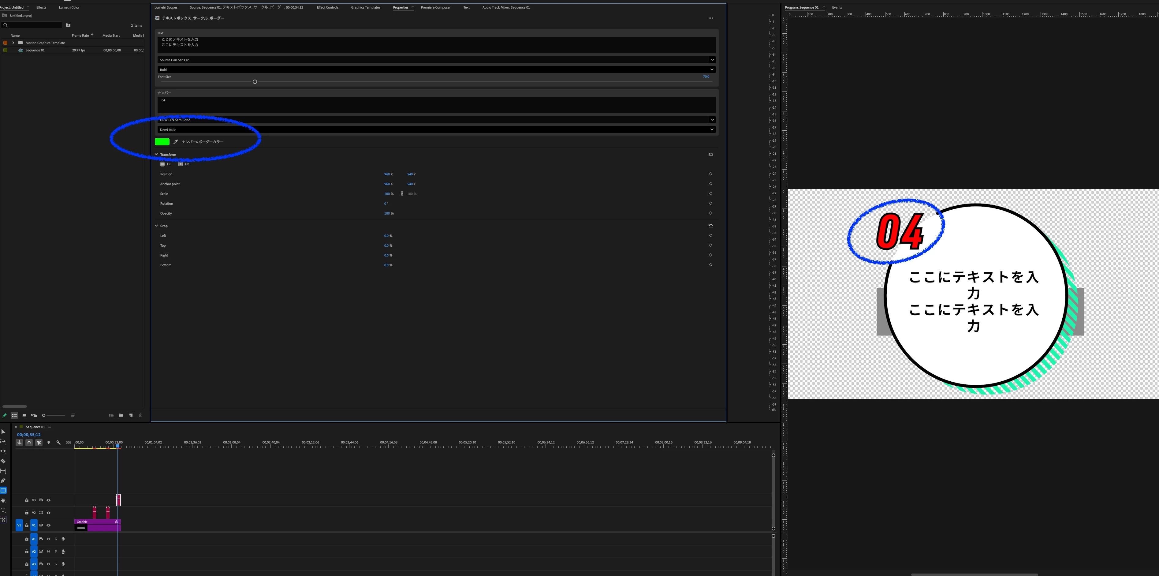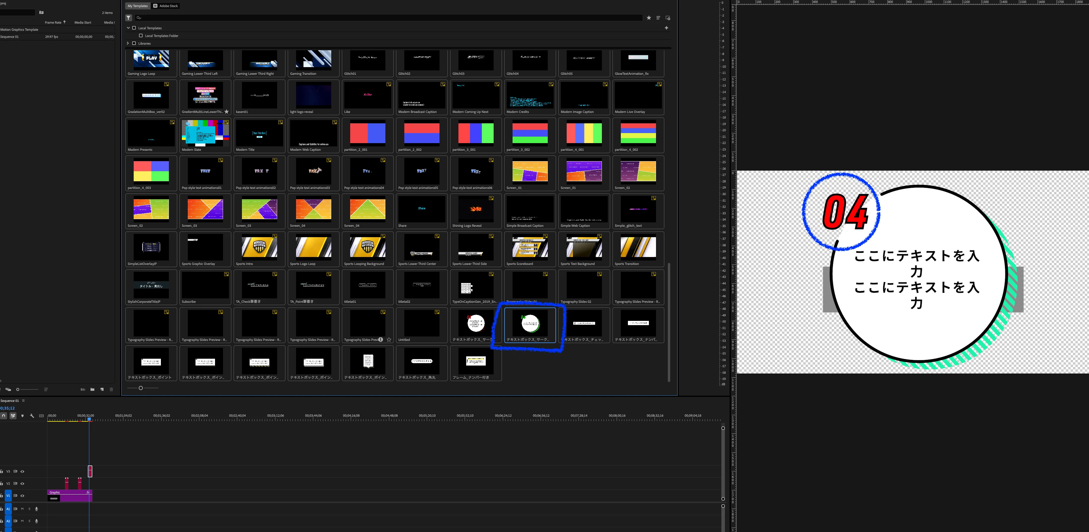 上記の、Prのアップデート前の環境下で使用出来ていたグラフィックテンプレート内のトランジションテンプレートで一部バグのような現象が発生しています。