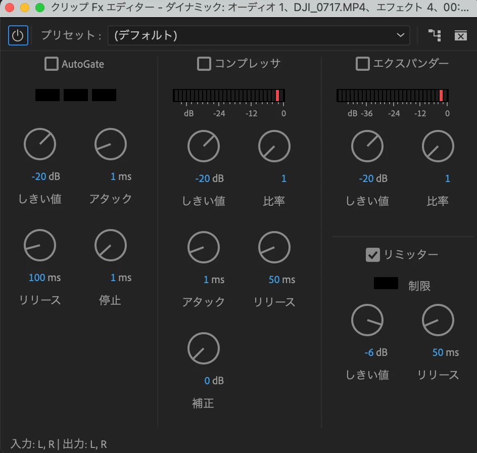 エフェクトにあるダイナミックの「リミッター」が機能しなくなっていました、