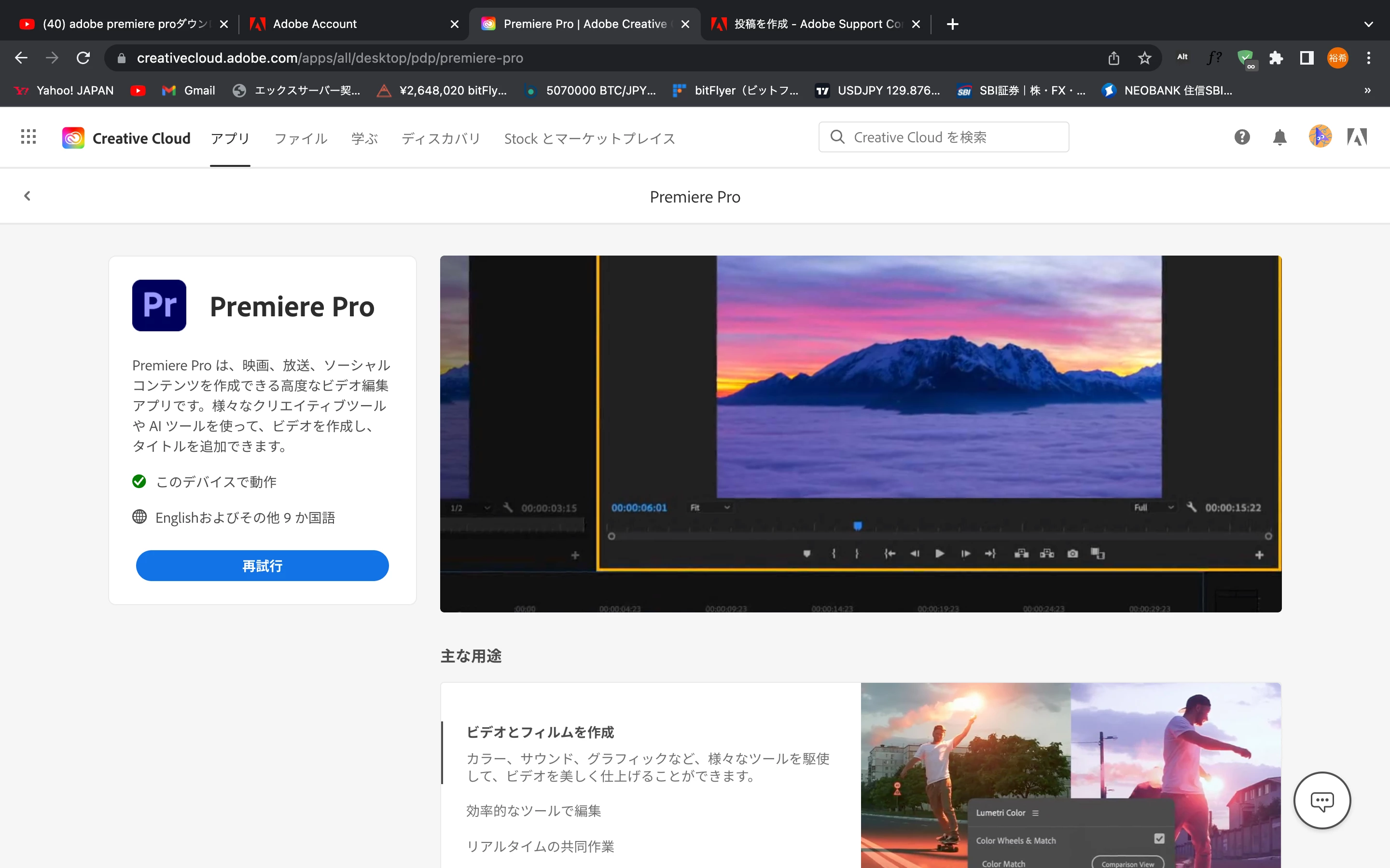 裕裕希25504863q4v2ParticipantForum|Forum|3 years agoAugust 3, 2022QuestionPremiere ProがダウロードできないForum|Forum|3 years agoAugust 3, 20221 reply327 viewsこのデバイスで動作OKと書いてあるもののダウンロードすると90%くらいでインストール出来なくなってしまいます。パソコンスペックはmac 2022 m2チップ 24GB ストレージ2TBです。どうか助けてくださいお願いします。FAQ