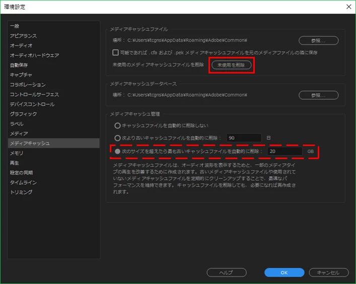 メディアキャッシュの保存先?もそっちに移してあります