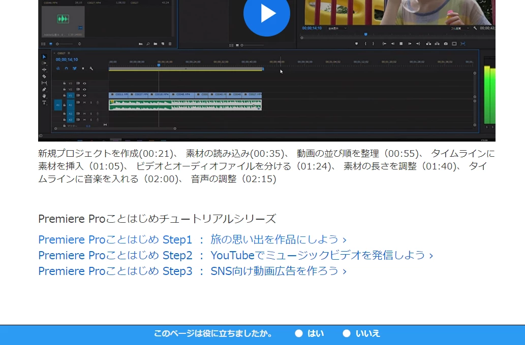 Premiere Proことはじめで使用する素材がどこでダウンロードできるのか分かりません。
