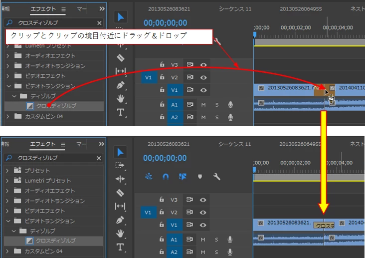 Premiere Proでのトランジションのかけ方