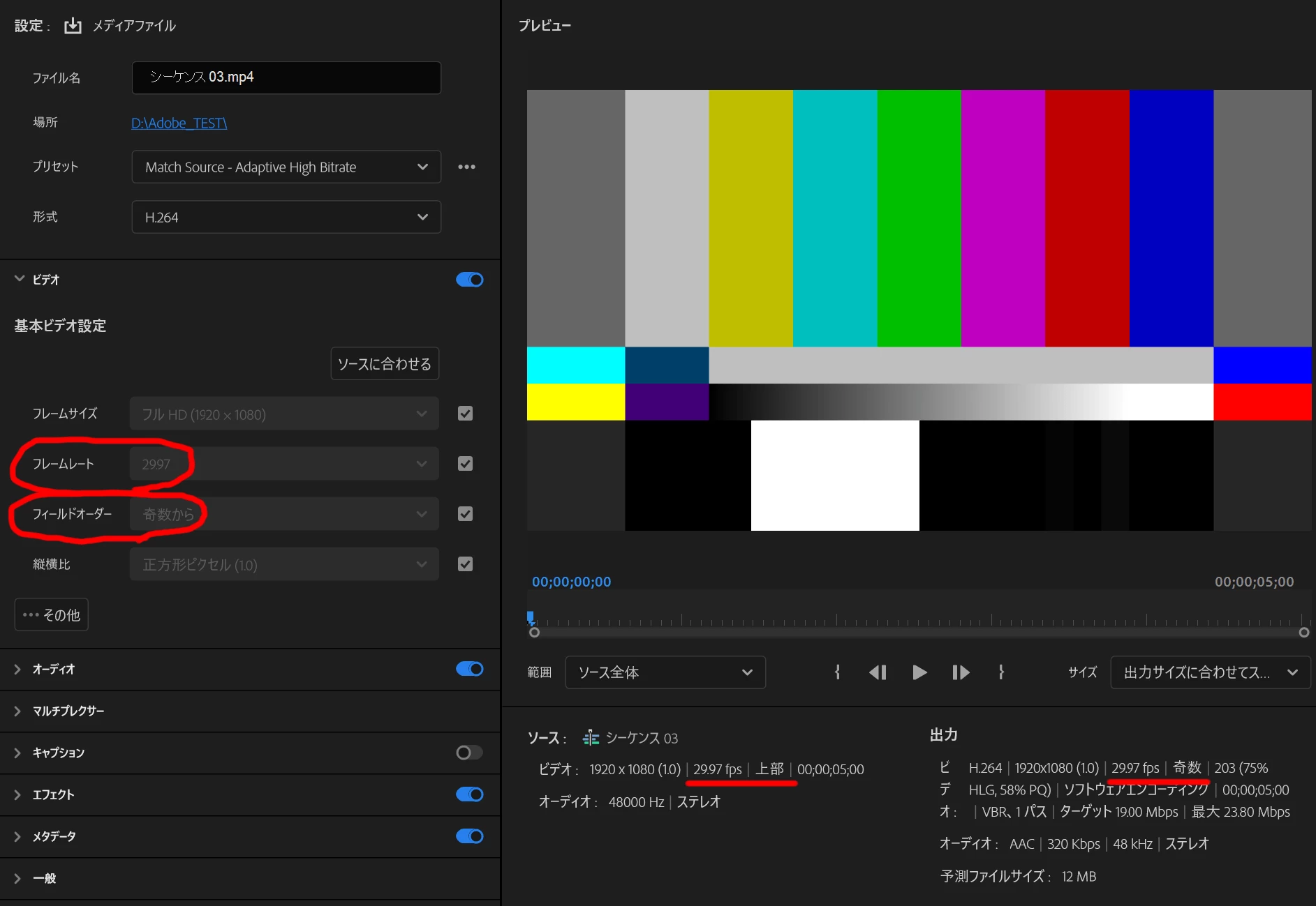 現状、Premiere Proのシーケンス設定は、撮影素材と同じ設定(60i)で編集を進めますが、