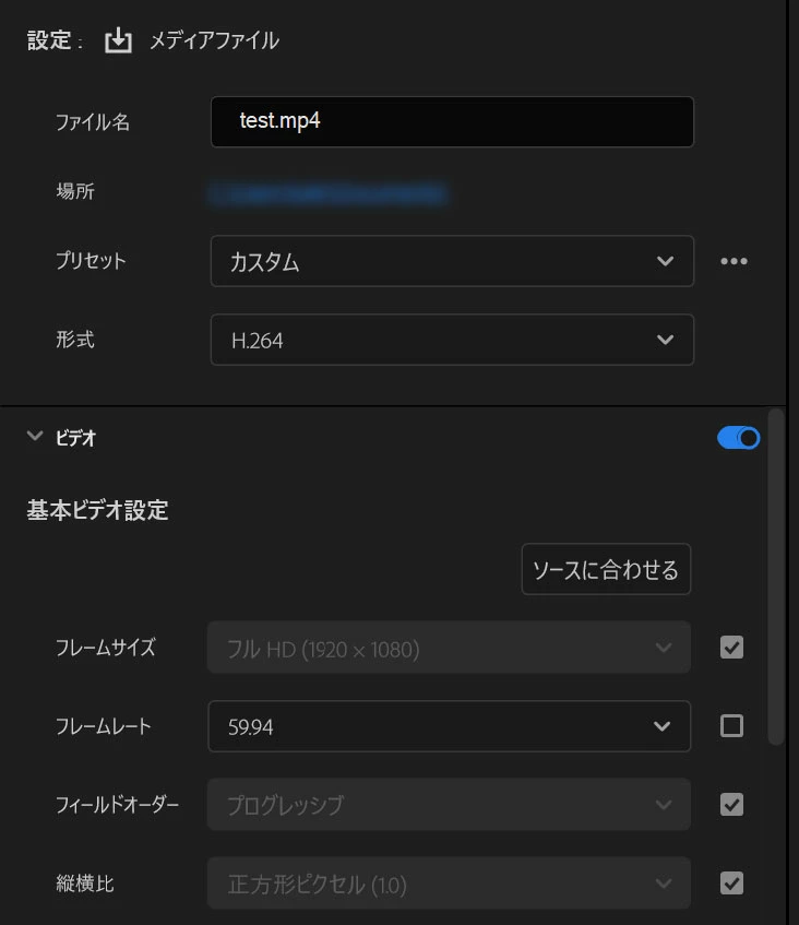 Premiereのエンコード時にH264/1080p/mp4を選択しています(ブルーレイにすることも可能な解像度とビットレートとして)