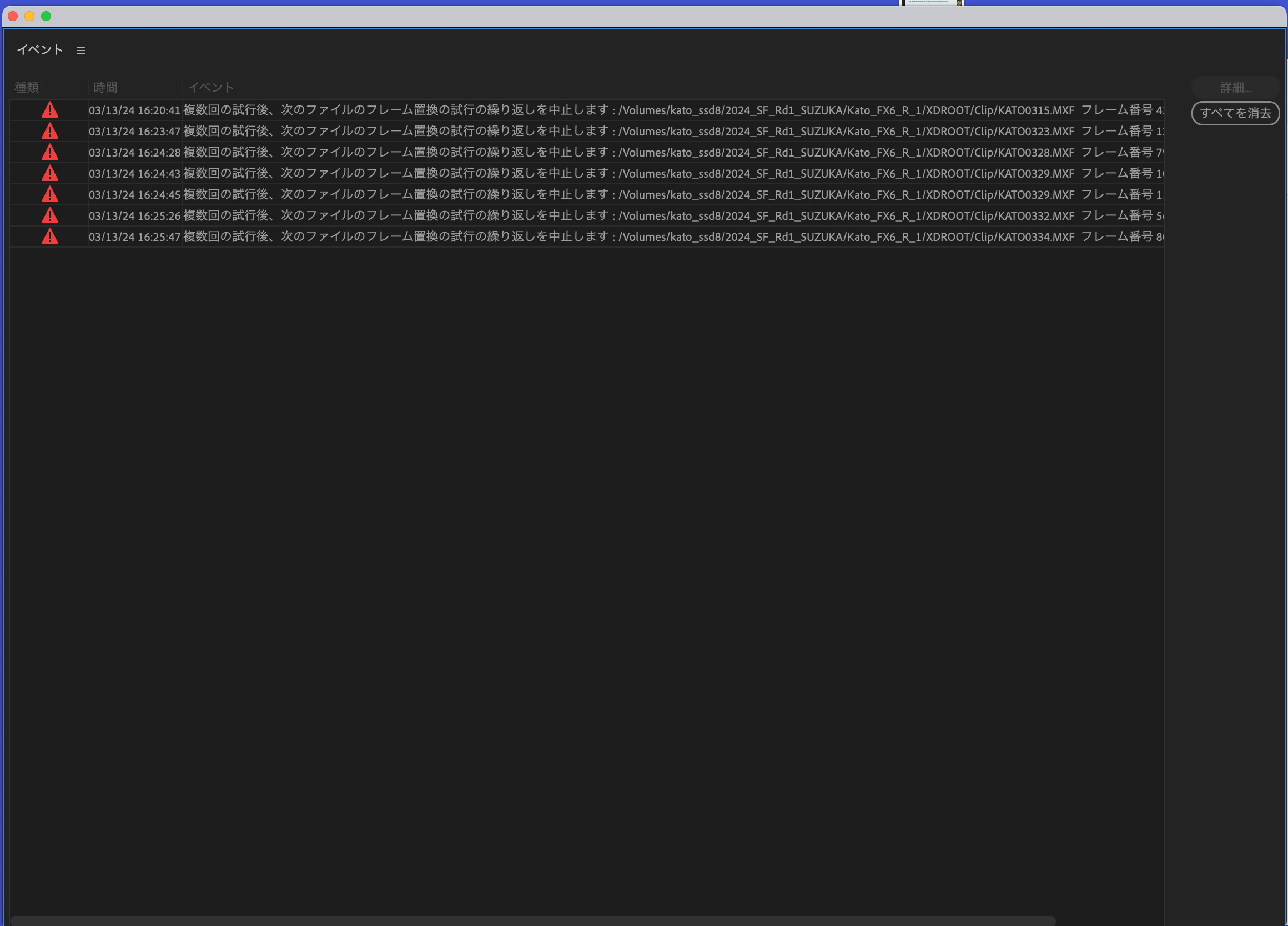 複数回の試行後、次のファイルのフレーム置き換えの試行の繰り返しを中止します