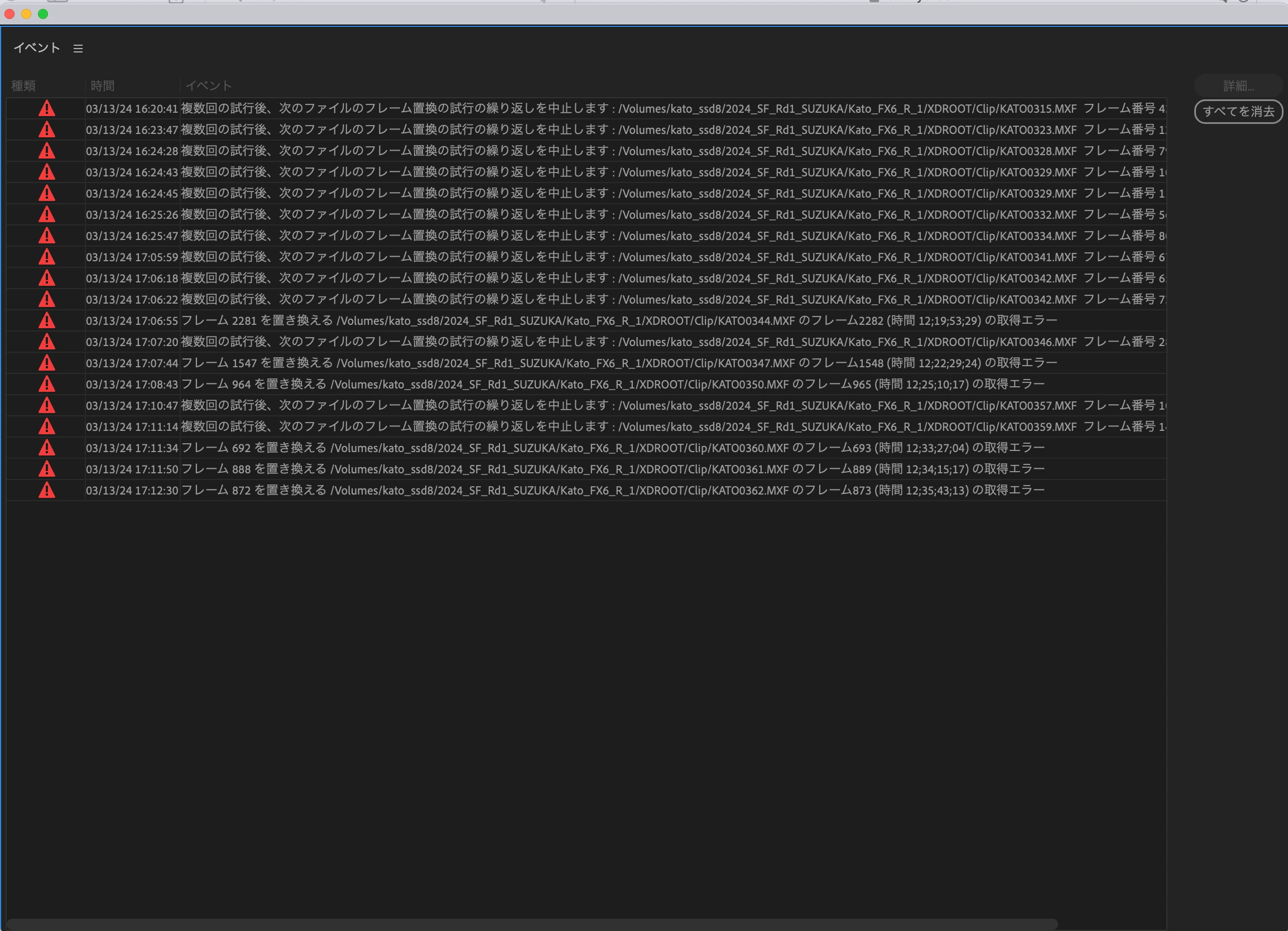 編集はできるのですが、たまに黒が挿入されたり、コーションがでまくりストレスが溜まります。フォーラムやAdobeからの施策をすべて試しましたが解決しません。