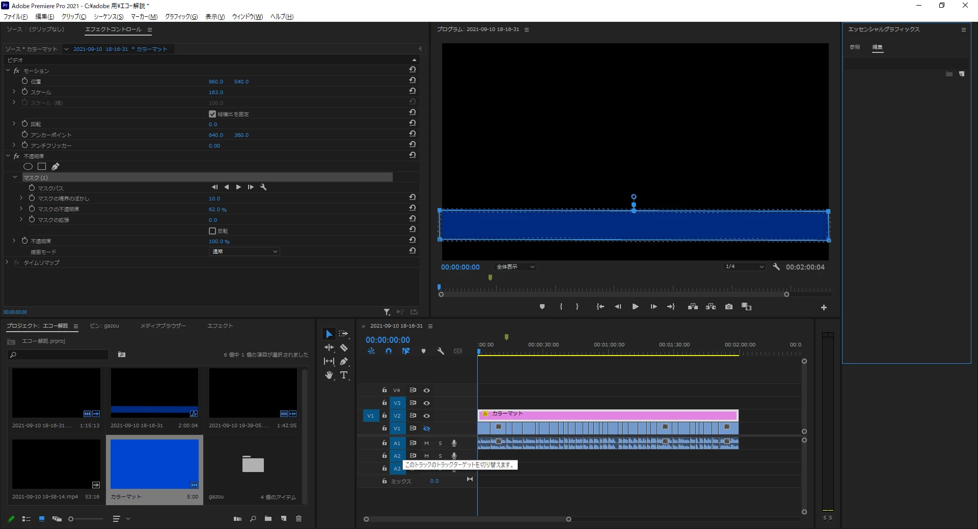 premiere pro エッセンシャルエフェクトのサイズ調整