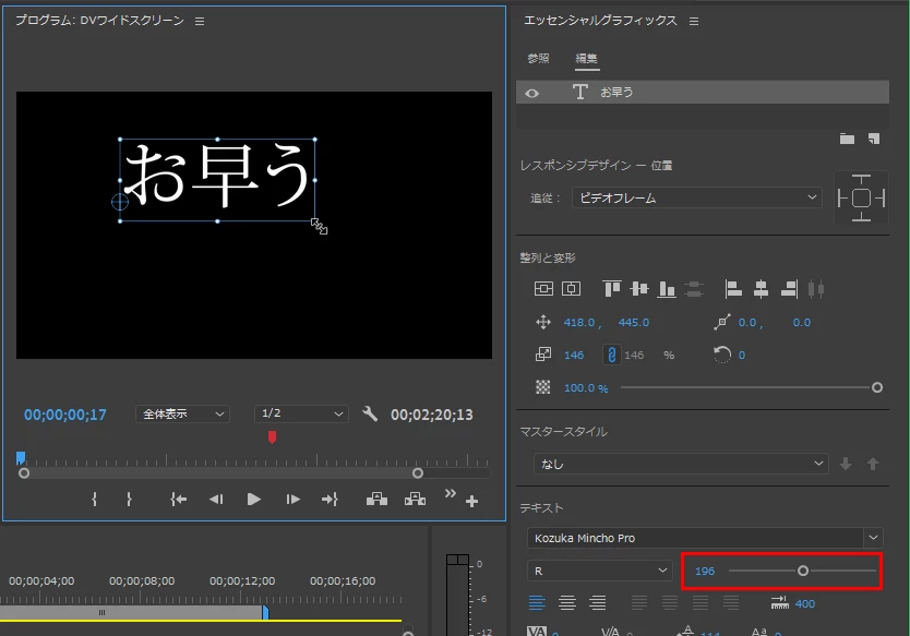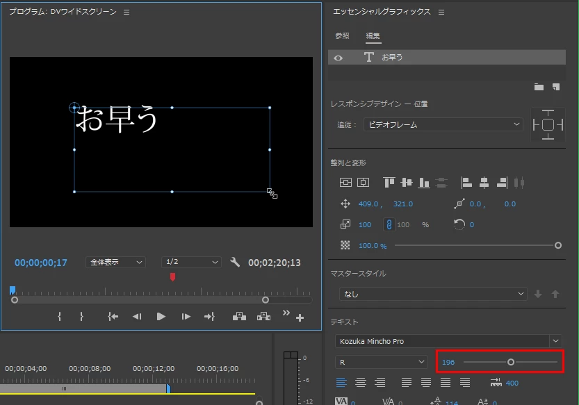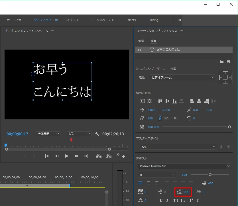 Premiere Pro 字幕の行間調整・字幕のテキストボックスの位置調整について