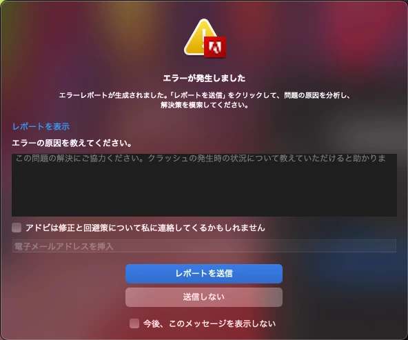 Premiere Proで作業している途中に突然エラーレポートが表示されるようになりました。