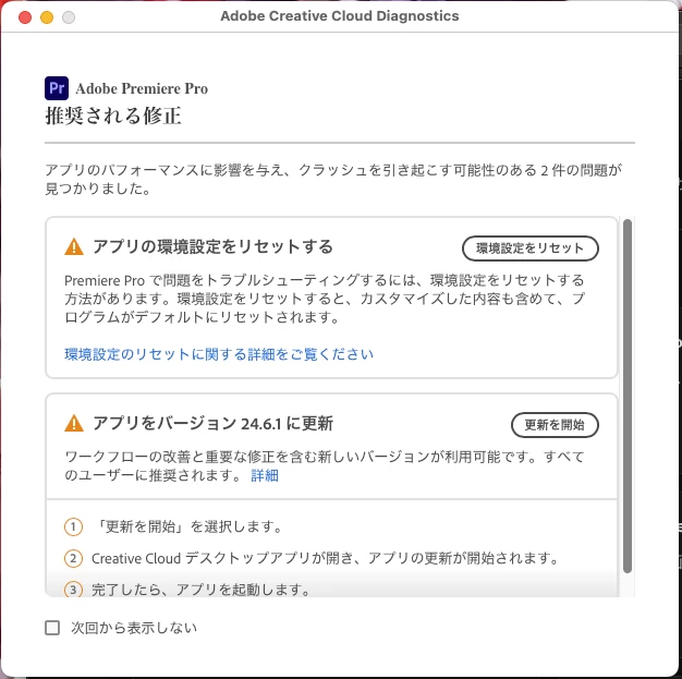Premiere Pro 突然エラーレポートが出る
