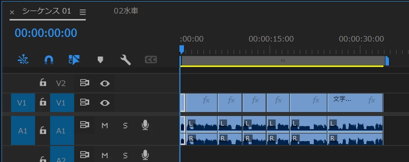 ⑥ビデオトラックでは、「語間」を削除した部分がリップル削除されます。