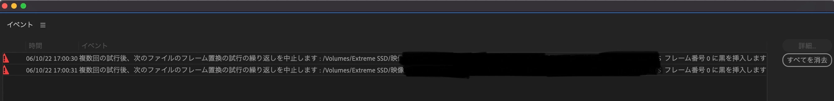 Premiere Pro 2022 v22.4「フレーム置換の試行の繰り返しを中止します」と出てしまいます。