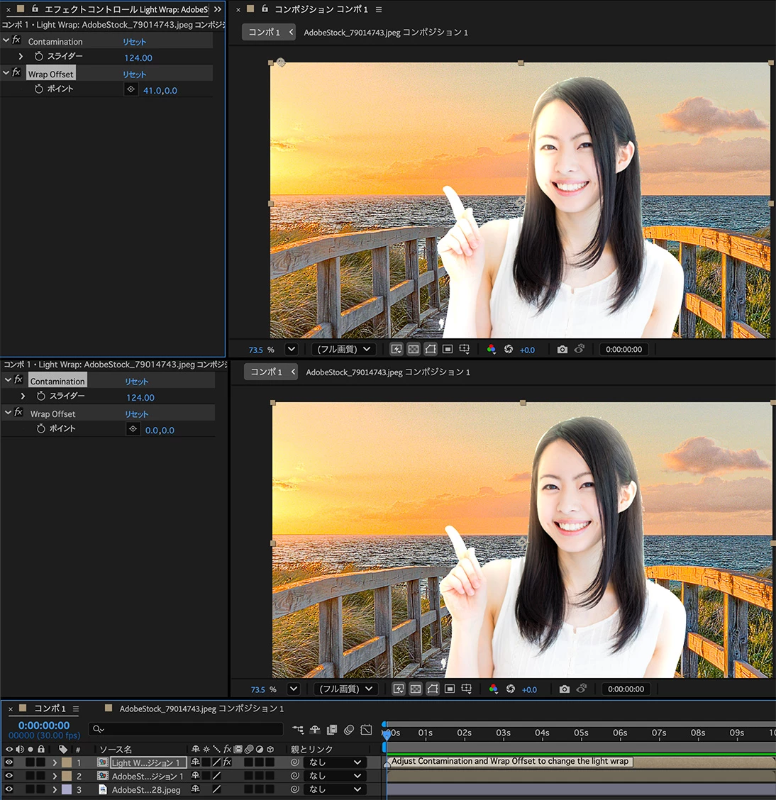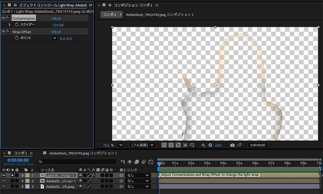 ① After Effectsで背景を透過してあります。背景に人が通って(被写体の近く)しまった為。