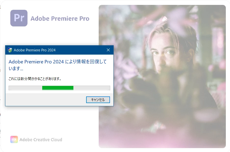 Premiere Pro(24)をCreative Cloud Desktopから起動すると、アプリ読み込み画面でフリーズして応答がないとエラー画面になる