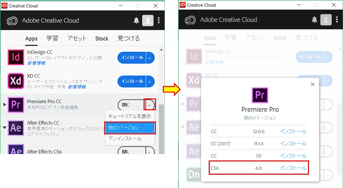 Creative Cloudにpremiere cs6が表示されず、インストールできないため、Encoreもインストールできず、