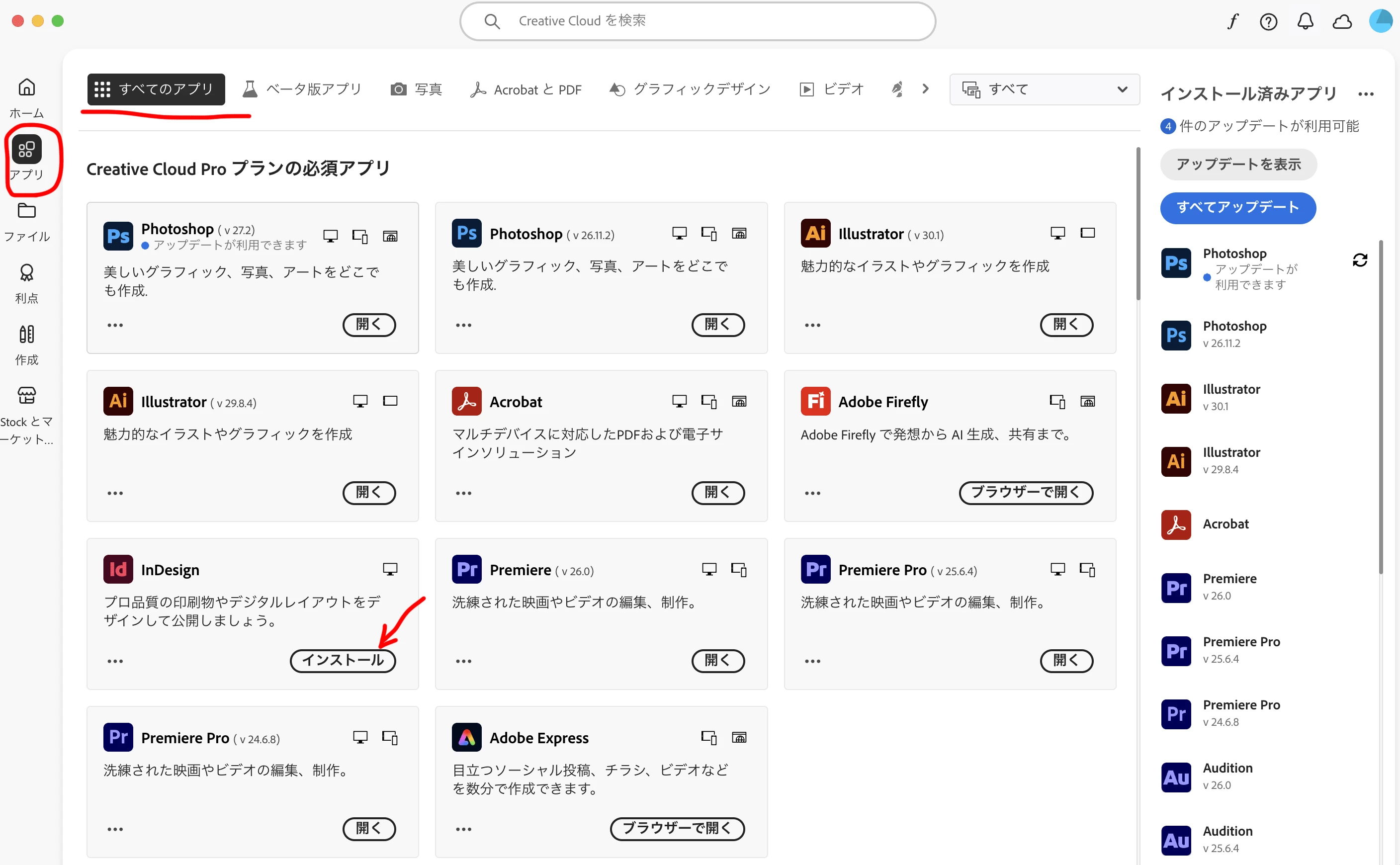 PremiereProをアンインストールする際、AdobeCCの中から完全に削除してしまい、インストールできなくなりました。