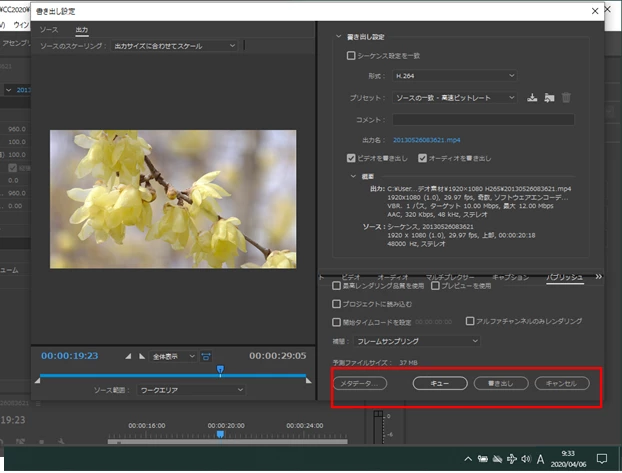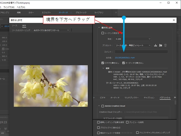書き出し設定画面は出てくるものの