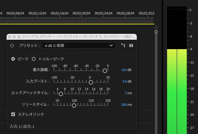 -9dbでハードリミットがかかった時は、-3dbのハードリミッターをかけると-6dbでリミットがかかります。