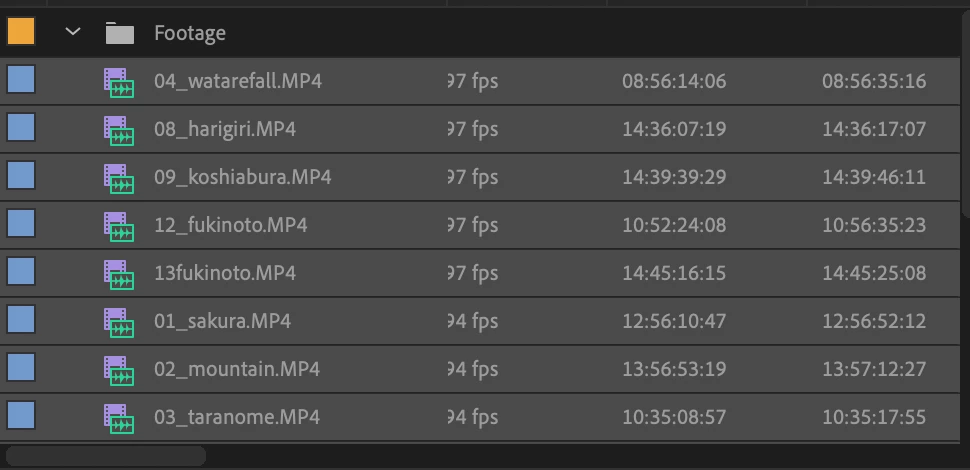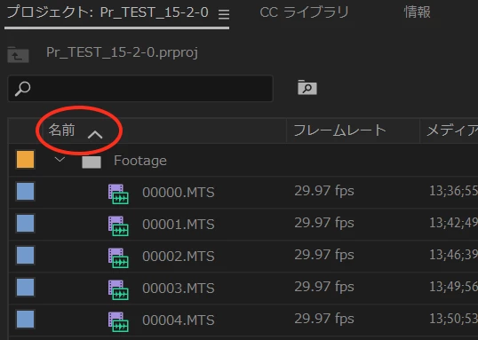 PremireProのプロジェクトパネルのファイルの表示順序がおかしい
