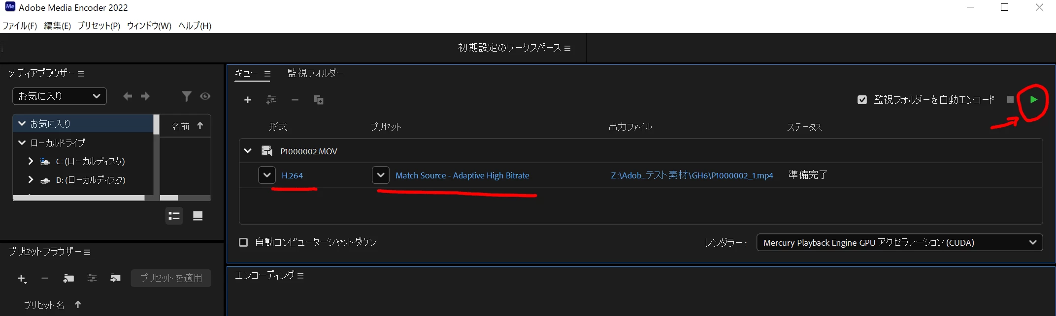 1プロジェクト設定→一般→レンダラー→Mercury Playback Engine-GPU高速処理(OpenCL)&ソフトウェア処理→両方で書き出し