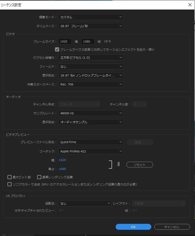 proresにコーデックを揃えシーケンスでコマ落ちが発生する
