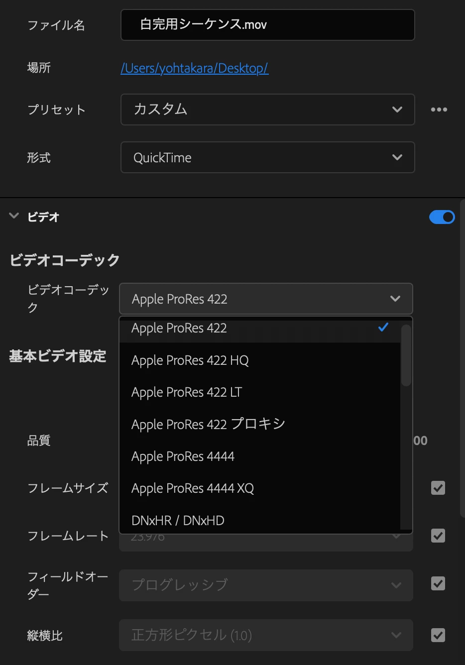 YYoh.y7uy7uy7uParticipantForum|Forum|2 years agoFebruary 8, 2024QuestionProResの書き出しパターンについてForum|Forum|2 years agoFebruary 8, 20241 reply1910 viewsパターン① 4KのProResパターン② HDのProResクライアントより上記パターンで書き出しデータが欲しいと依頼があったのですが、添付したスクショに、そのようなビデオコーデックで見つからないのですが、正解の設定を知りたいです。撮影素材とシーケンス設定は4Kです。詳しい方いましたら、教えて頂きますと幸いです。