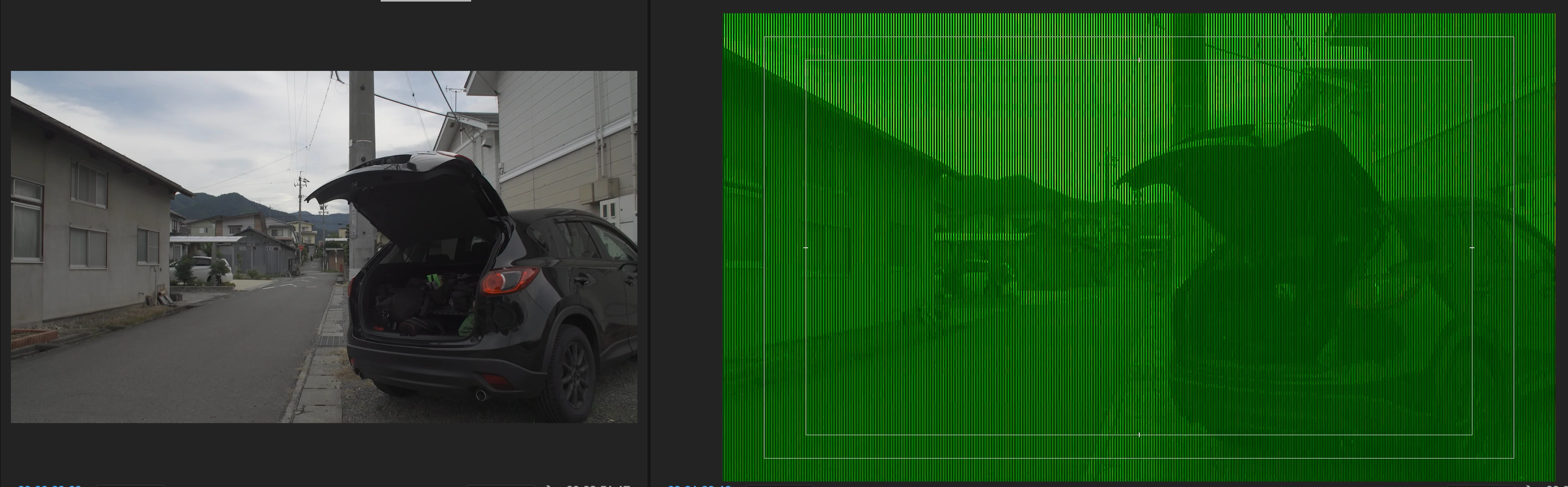 sony pxw-fs5 のHLGで撮影した素材をタイムラインに乗せるとグリーンアウトのコマがいくつも表示される。