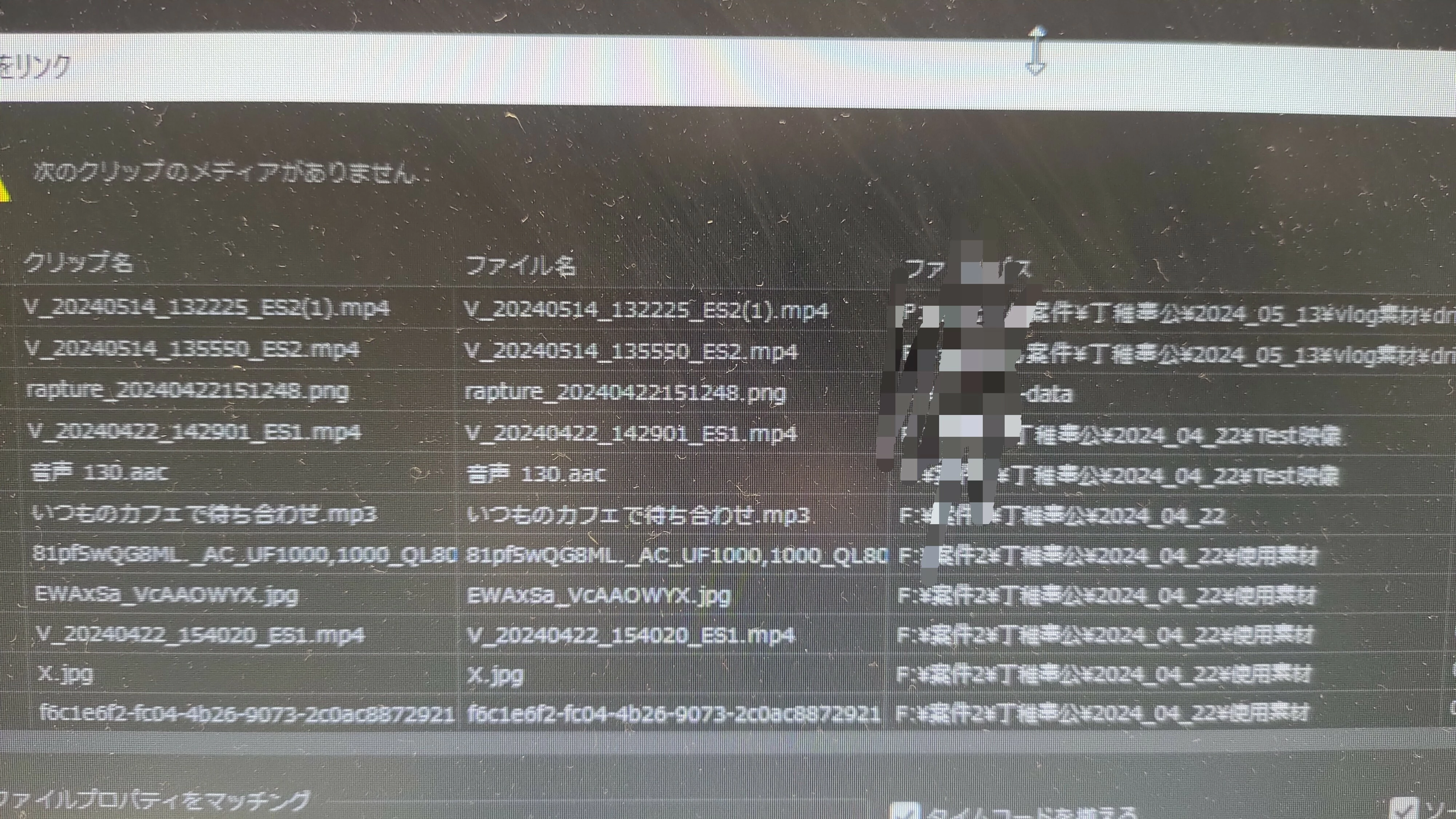 ー(windows側にて)プロジェクトマネジャーでファイル場所、統合したにも関わらず