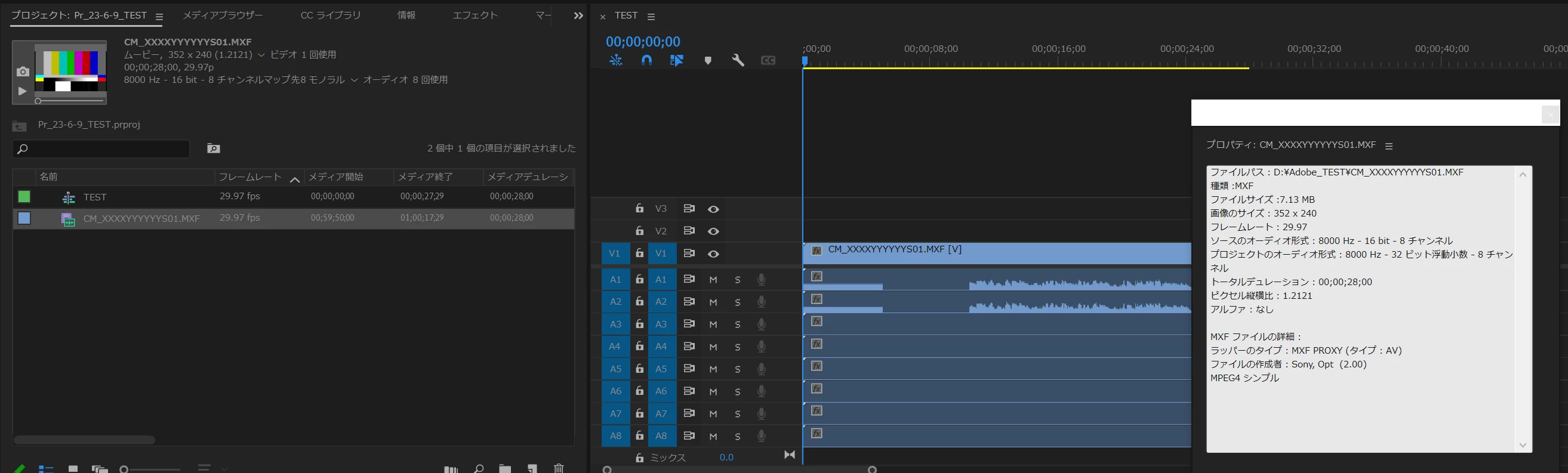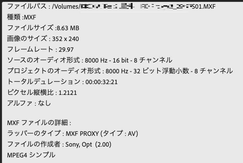 XDCAMデッキPDW-U2で作成したProxy (PD Proxy MXF)をタイムラインに並べたところ、