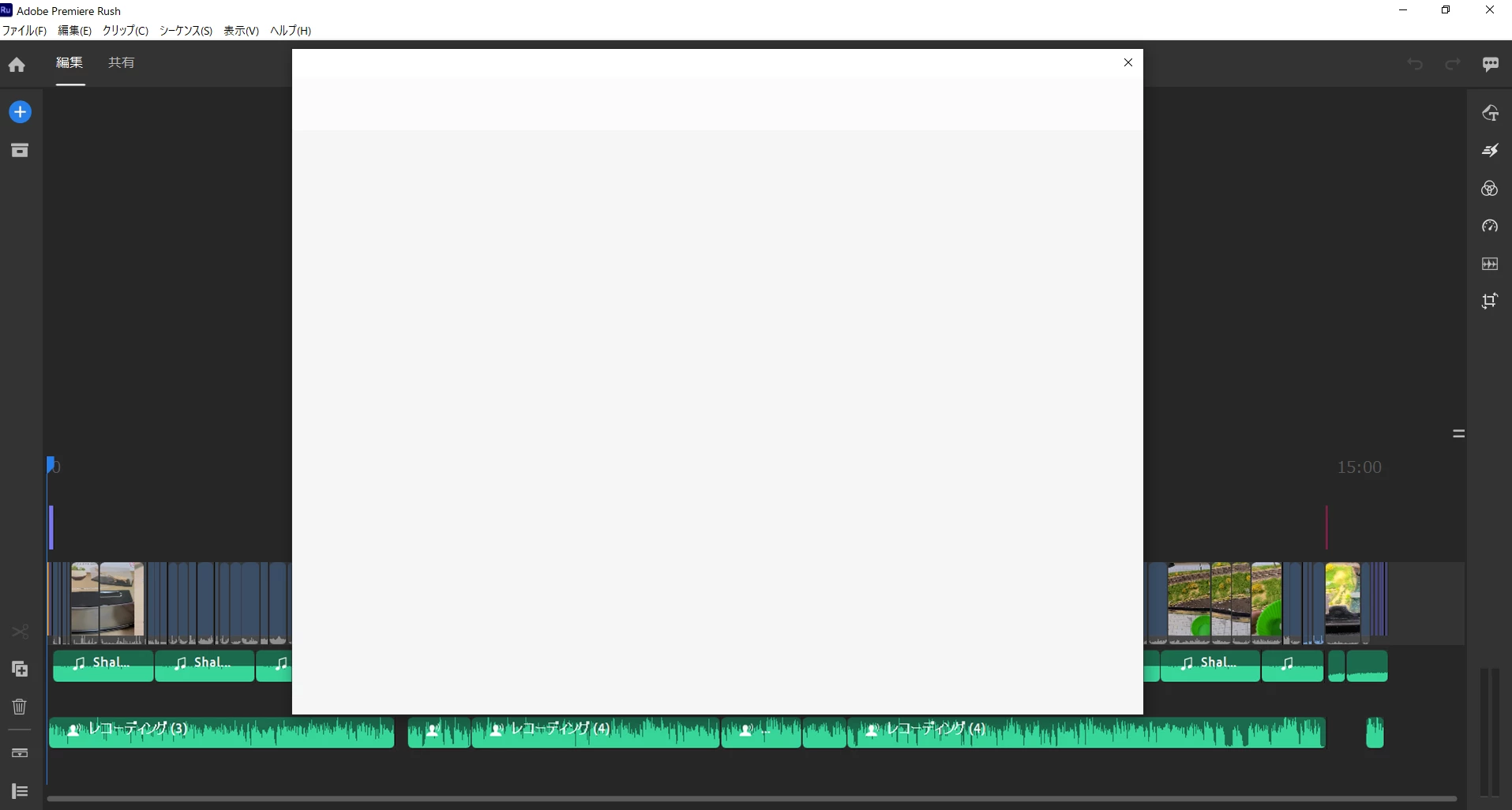 書き出しする為に共有のタグを押すと中央部に四角い別ウインドウが立ち上がるが、