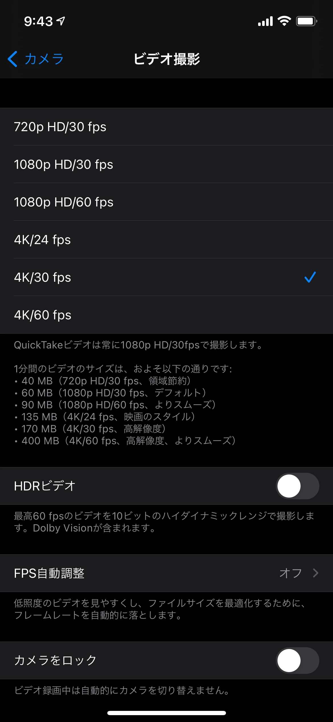撮影は標準のカメラアプリで、モードも規定の(4K・30)。