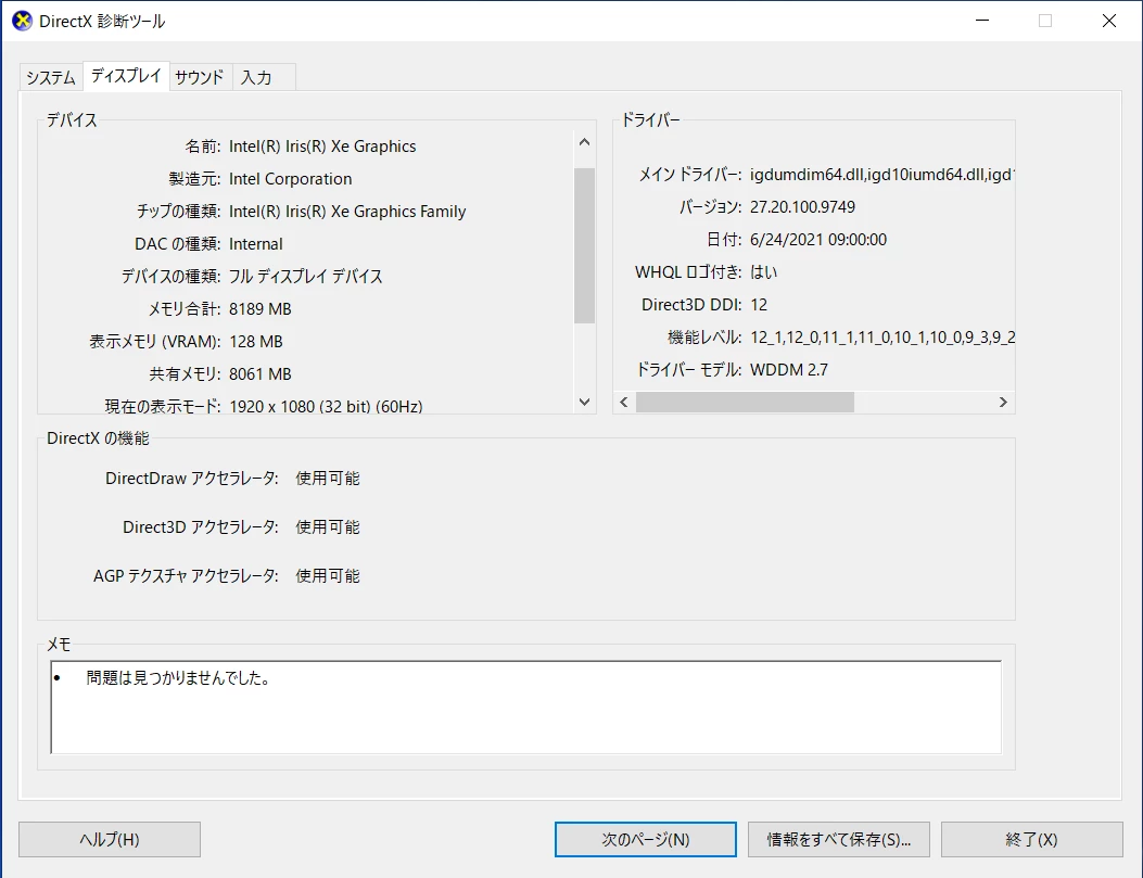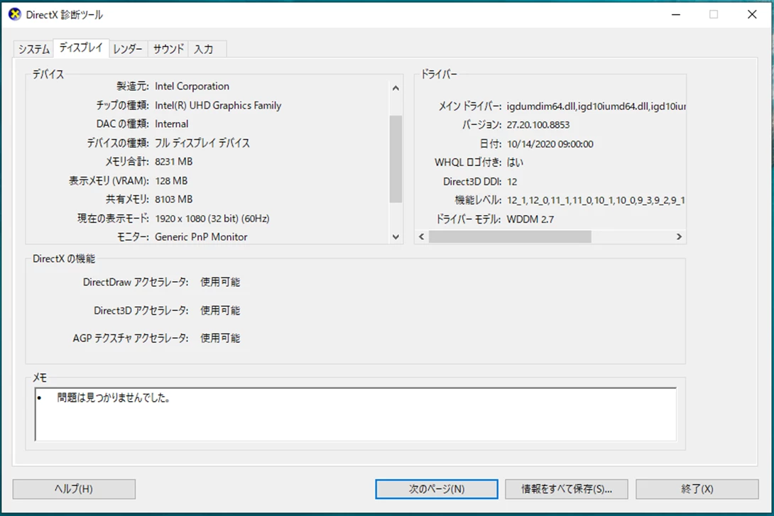 念のため、ドライバーはIntel提供の最新版に変更してみるのはしてみてもいいかもしれません。