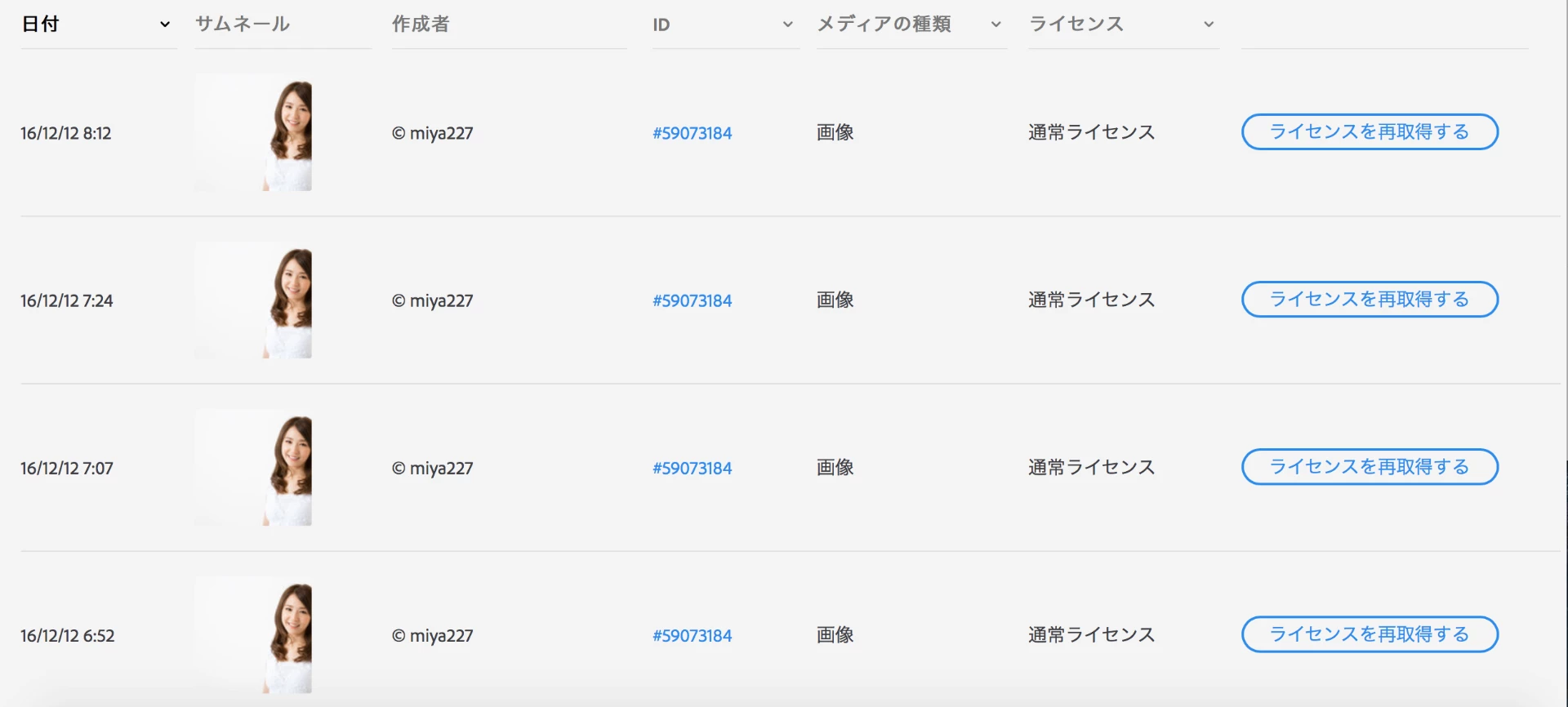 ライセンス取得履歴にはにはダウンロード済みとなっているのに画像がダウンロードできていません。