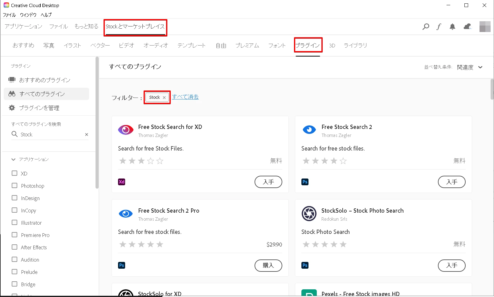 現時点でとなると「探してみる」しかないんですが、 CCの管理パネルからStock用のXDのPlug-inを試すのが選択肢の一つになればいいなぁと
