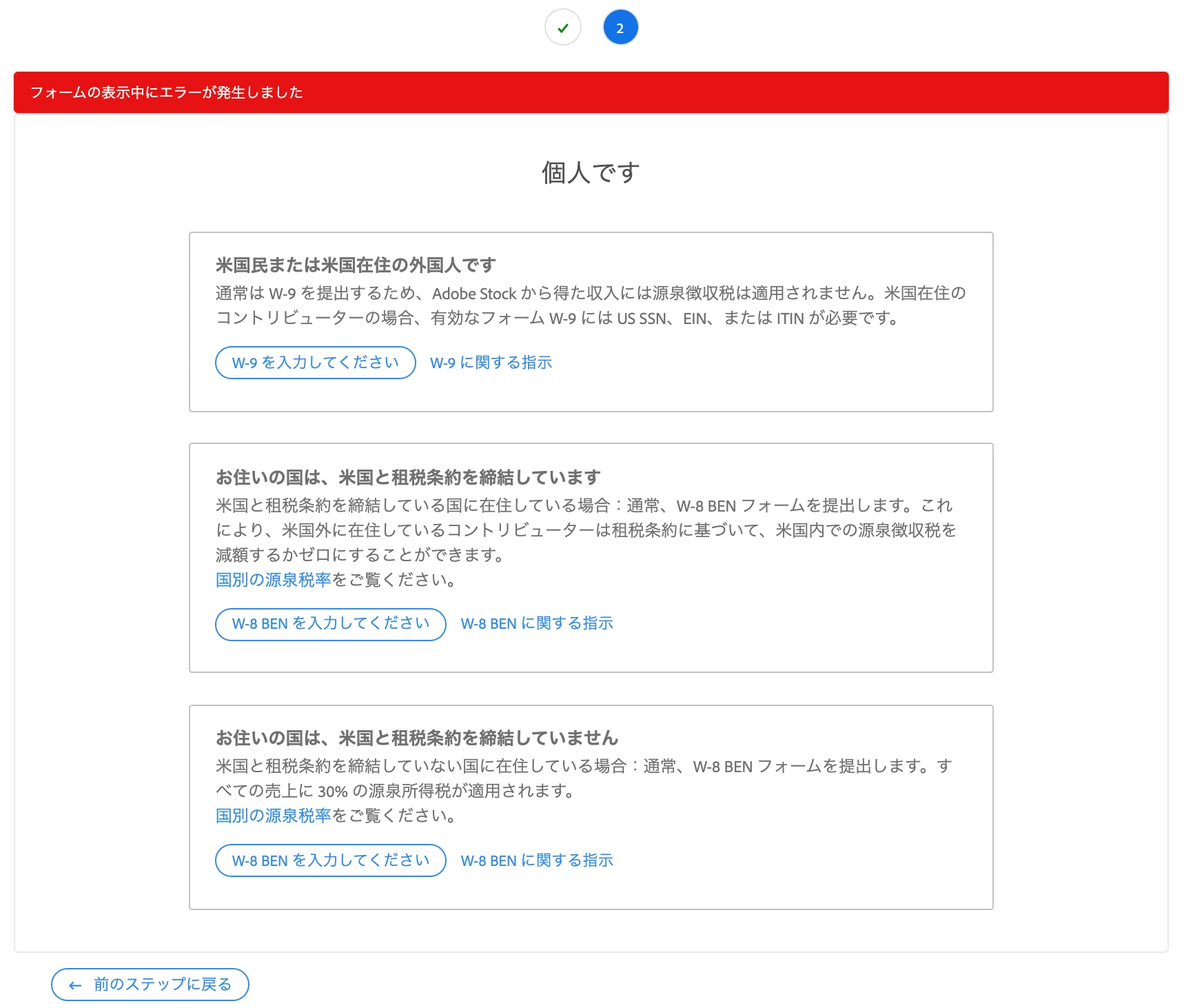 W-8 BEN を記入したいが表示されない