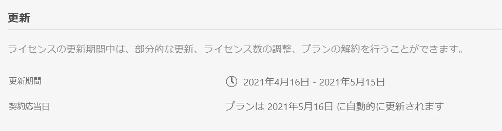 →追加ライセンスの更新日も10/30となり、7か月と10日の契約となります。