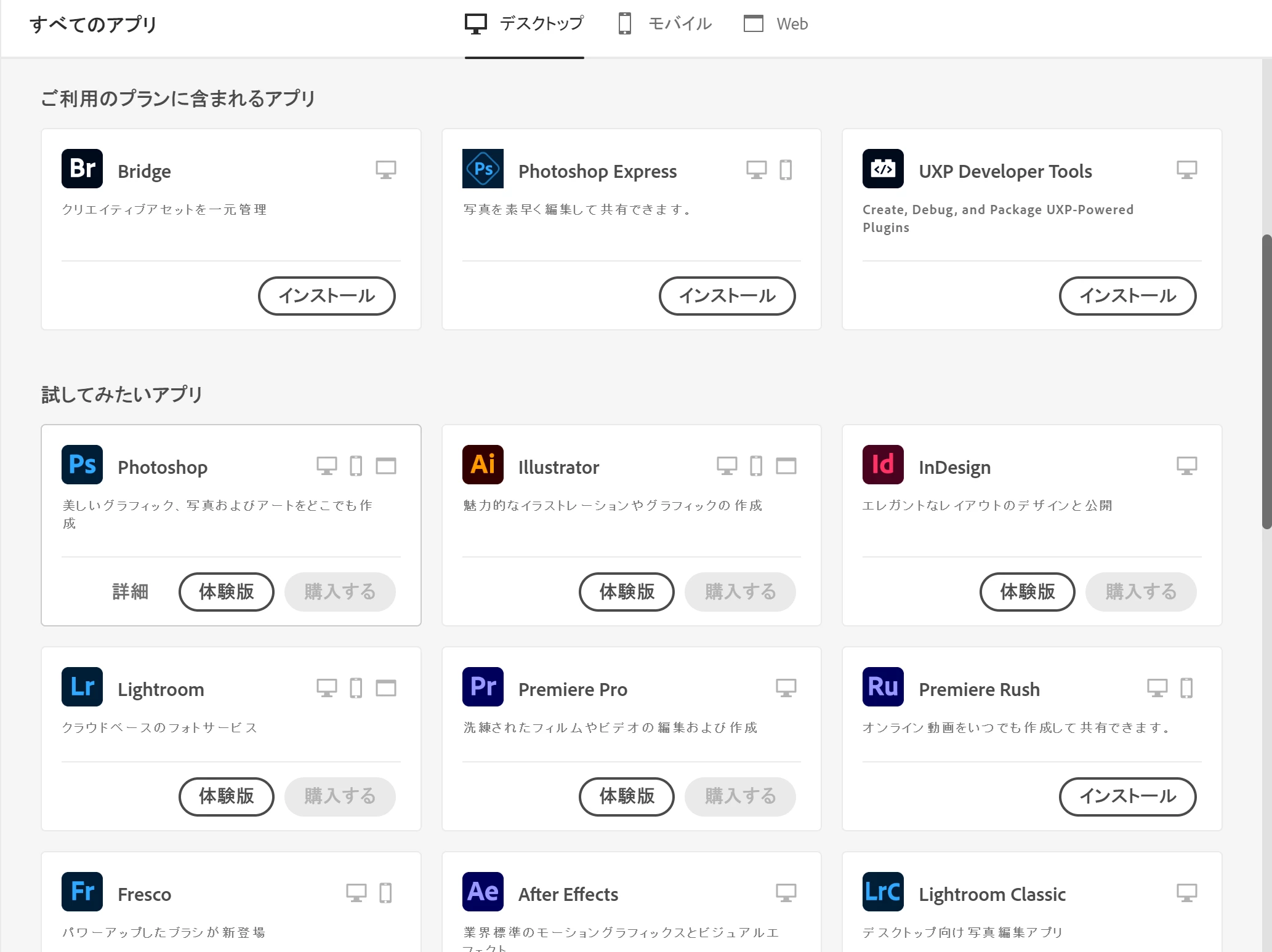 Adobe Creative Cloud Desktopは最新バージョンにアップデートされています。