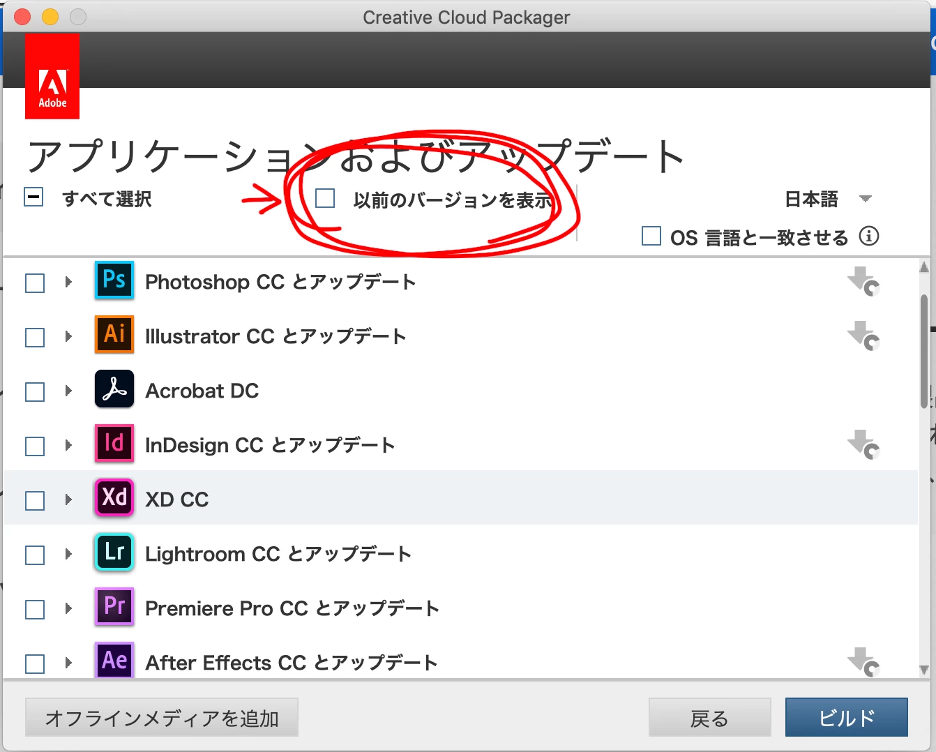 CC2018より前のバージョンが表示されない為、インストールできません。