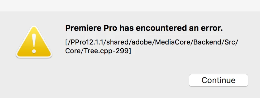 Premiere Pro has encountered an error.