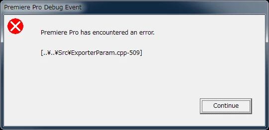 AJA Video Systems製 I/Oボードを利用している環境において、Quicktime for Windowsをアンインストールすると、Premiere Pro CC 2015.2(9.2.0)の起動時に以下のようなメッセージが表示され、クラッシュする現象が確認されています。