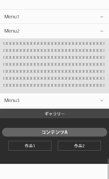 アコーディオンメニューの開く方向に配置したコンテンツをアコーディオンメニューの開閉によって切り替えたいわけですね。