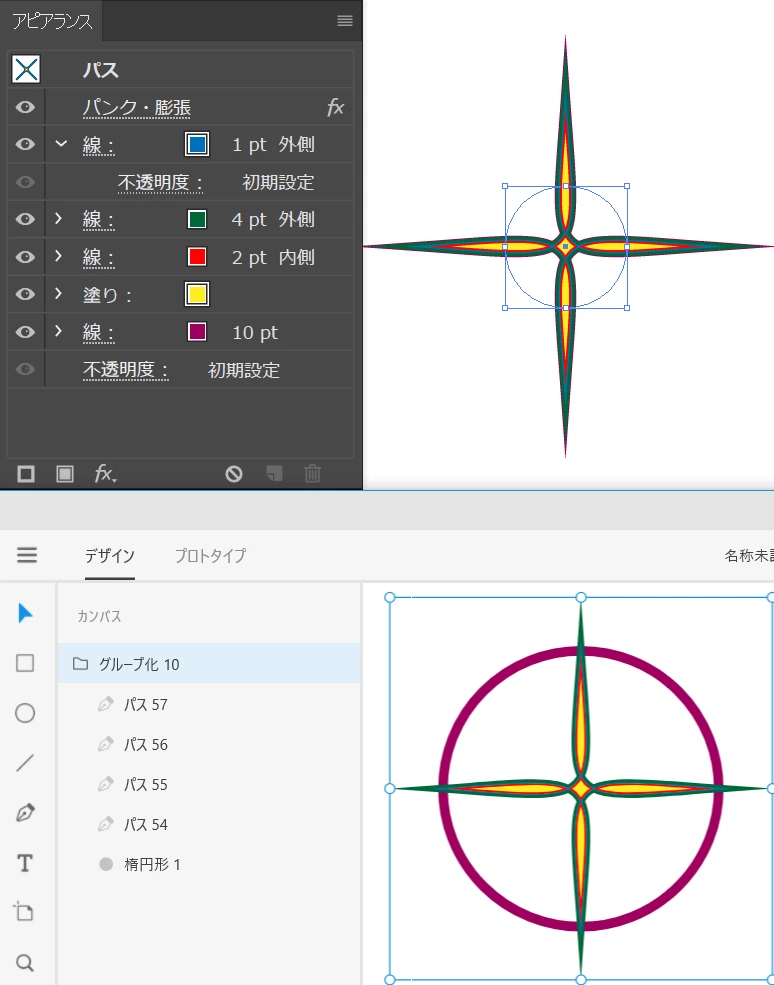 イラレの効果「パンク・膨張」を使ったアイコンのペーストがうまくできない